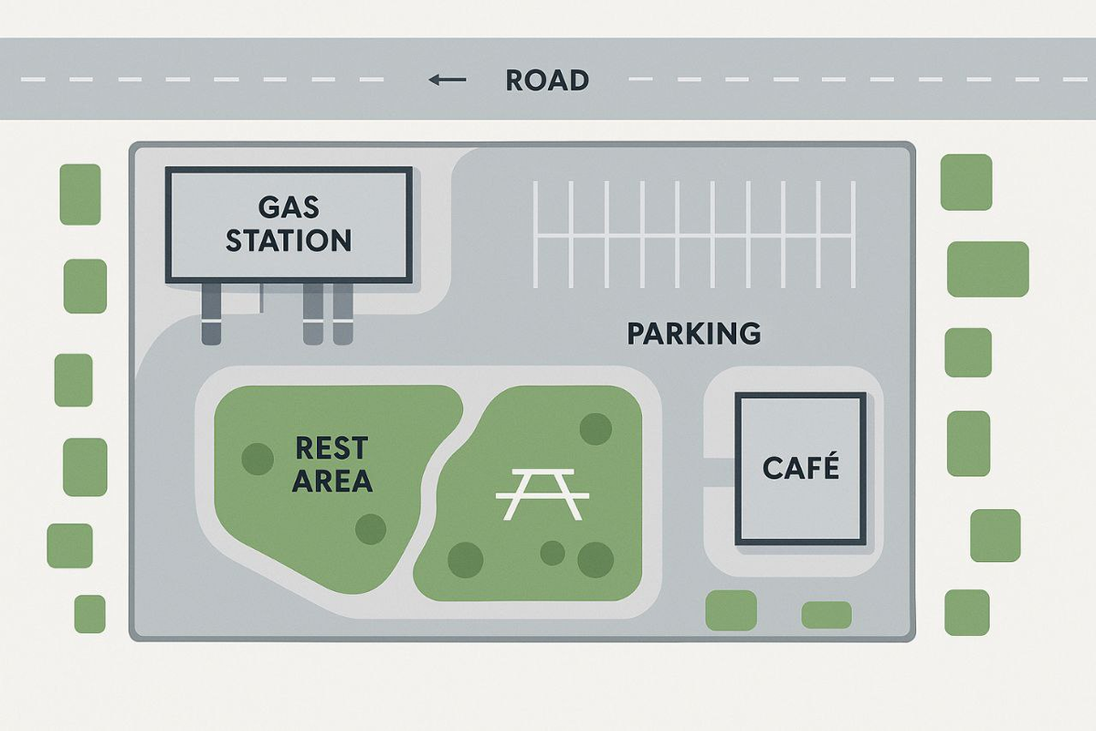 Особенно пристальное внимание уделяется платным трассам, ведь тарифы на проезд достаточно высоки, а значит и комфорт поездки по такой трассе должен быть на соответствующем уровне. В данной публикации мы рассмотрим правила проектирования многофункциональных зон дорожного сервиса согласно действующих нормативов.