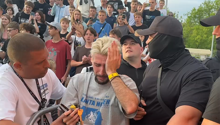 Охранники выглядят растерянно. «Вы че, безголовые? Здесь одни дети. Вы че вообще делаете?» – спрашивает кто-то из игроков 2D. Один из людей в черном (единственный, у кого открыто лицо) отвечает: «Он стоял, орал, с ним все нормально было. Пацаны, вы не видели ничего, не надо выводы делать».