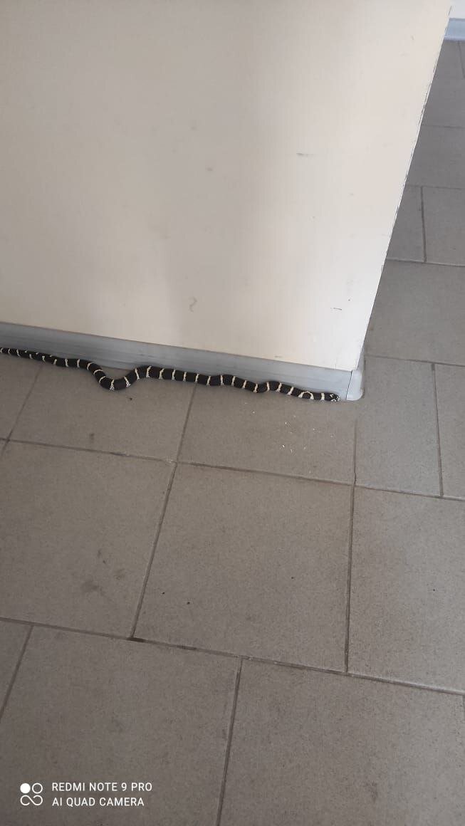 Официальный канал Горячего Ключа сообщает, что сегодня жильцы одного из домов увидели в подъезде, змею непривычного окраса и вызвали спасателей. Те отловили ее и вывезли подальше в естественную среду обитания.