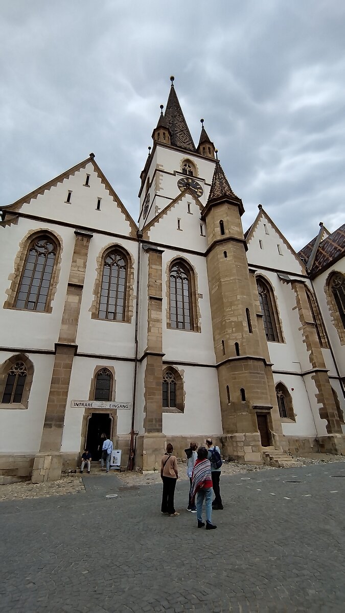 Если вы путешествуете по Румынии, и добрались до города Сибиу, в обязательном порядке, советую посетить лютеранский собор Святой Марии, который ранее является центром трансильванских саксонцев. Церковный шпиль высотой 73,34 метра является символом города. На высоту 73.34 метра конечно не подняться, но до шпиля, добраться можно. Хотя, для неподготовленного человека, это достаточно сложно: крутые, спиральные ступени, то ещё испытание! Первая, небольшая остановка, где можно перевести дыхание - площадка под колоколами. Вторая - площадка под самым шпилем. С этой площадки, можно попасть в башни с бойницами, откуда открывается замечательный вид на старый город. Виды, ради которых стоило попыхтеть! :) Немного истории собора: Трансильванские саксонцы перешли в Евангелическую Церковь под влиянием проповеди Йоханнеса Хонтеруса. Главным церковным зданием новой конфессии стал вновь построенный (1520 год) собор святой Марии. До настоящего времени собор является центром Евангелической Церкви Аугсбур