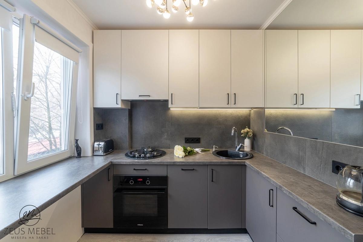 Кухня серый низ светлый верх: идеальное сочетание для современного интерьера. Локация: г. Архангельск, ул. Тимме,2/3.