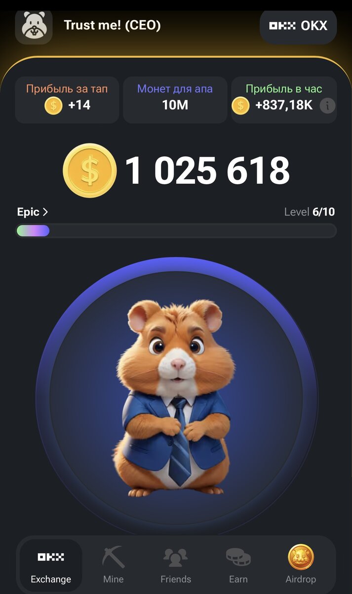 Hamster Combat или Хомяк, игра в телеграмм боте, за которую обещают подарки, в виде криптовалюты, которую разрабатывают основатели данной игры. Если вы еще не играли, заходите по ссылке, от меня вы получите бонус 5000 монет, а если у вас телеграмм премиум, то 25000 монет. Суть игры заключается в том, чтобы прокачивать Хомяка и достичь уровня ”Lord“ в мире криптовалют. Прокачивать Хомяка можно несколькими способами: Не забывайте каждый день получать эти бонусы, и вы сможете быстро продвинуться по карьерной лестнице этой игры. Новый набор Комбо карт на 10-11 июня: Ежедневный шифр: Web3 W - • — — E - • B - — • • • 3 - • • • — — Если вдруг вы все еще не в игре, заходите по ссылке. Подписывайтесь на канал, следите за новостями и делитесь своими ссылками в комментариях.
