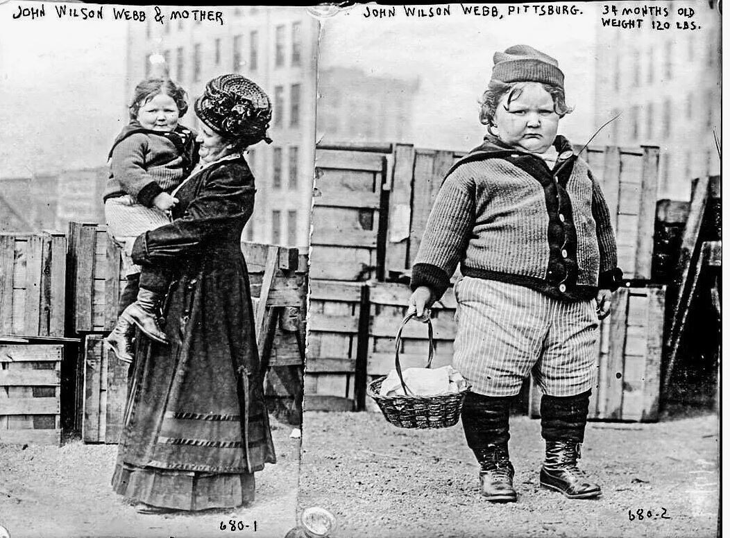 Румяный крепыш, розовощекий мальчуган. Трехлеткой его язык не поворачивался назвать, ведь он весил как взрослый человек. К сожалению, судьба мальчика была трагичной. Джон Уэбб родился в 1906 году. Он жил в небогатой семье, его родители были самые обычные работяги в Питтсбурге. Сначала мальчишка рос, как и все его сверстники. Но потом начал стремительно набирать вес. Причем он не просто толстел, он еще и рос. К трем года она весил за 50 кг и был на полторы головы выше своих одногодок. Однако семья была близка к разорению: глава семейства скончался от туберкулеза. И матери приходилось работать на тяжелых работах, причем не на двух, а порой - на трех, чтобы денег хватило на пропитания. При этом бедной женщине приходилось и ухаживать за сыном, ведь мальчик не мог самостоятельно одеваться или есть. Аномальный вес привел к разным болезням, в числе которых - синдром отложенной боли. Это опасно для жизни, но, к сожалению, люди с этим заболеванием не сразу узнают про это. Пока жизнь семьи кати