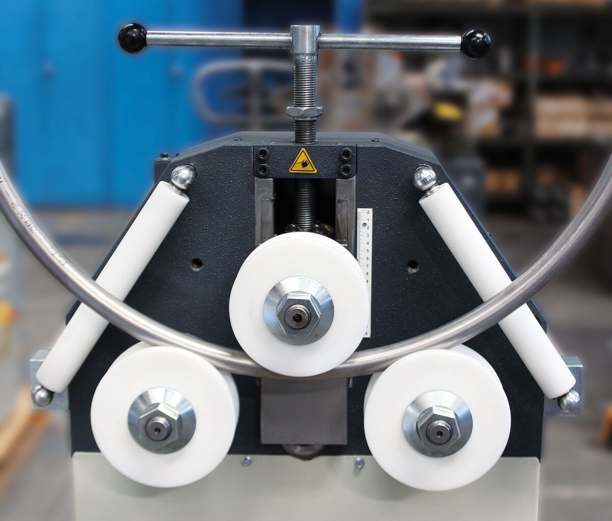 ‣Подача материала: Металлический прут помещается в гибочное оборудование.