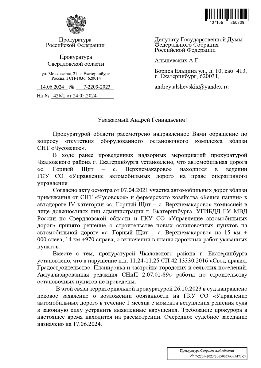 Управление автодорог Свердловской области не спешило построить остановку возле СНТ «Чусовское» (Екатеринбург, район Верхнемакарово).