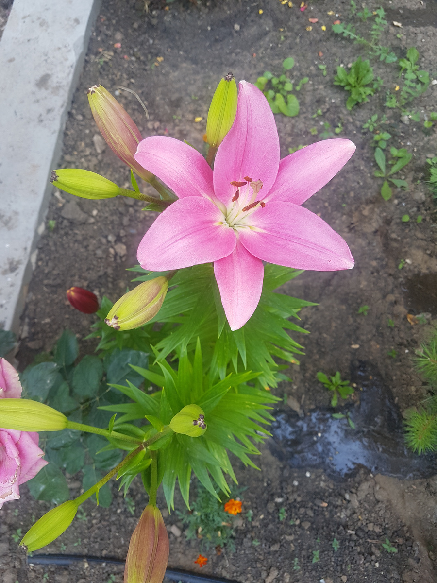 Доброго времени суток Всем кто попал к нам на канал! Мы продолжаем наш дневник о палисаднике и о том что в нем цветет на 17.06.24г. И нам снова есть что Вам показать. Розочки наши уже практически все показались, а некоторые даже скоро покажутся и по второму разу, но не розами едиными у нас в палисаднике достигается красота. Хотя и без них не куда. В этот раз у нас будут преобладать лилейники и лилии, и лишь совсем немного розочек😊 И откроет нашу перекличку сегодня вот такая красавица нежно розового цвета. Все наши лилии попали к нам от хозяйки палисадника на который мы уже делали обзор 😊 И все они прекрасны, некоторые были посажены совсем уж детками, но было это 2 года назад так что теперь они уже все взрослые и сами уже дают деток. А это ее сестричка, которая сидит рядышком по другую сторону от сосны: Она распустилась уже попышнее, выдав сразу 3 цветка, но через пару дней тут будет уже целый букет😊 А вот такая красотка дала лишь 1 бутончик, который лопнул сегодня в ночь: Поскольку