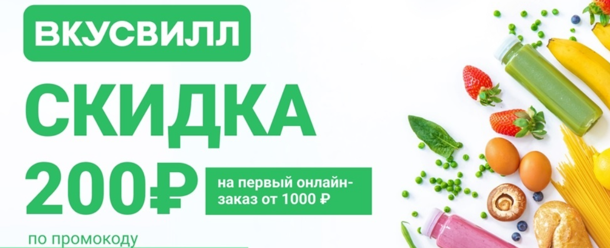 Скидка 200 рублей на первый заказ в ВкусВилл