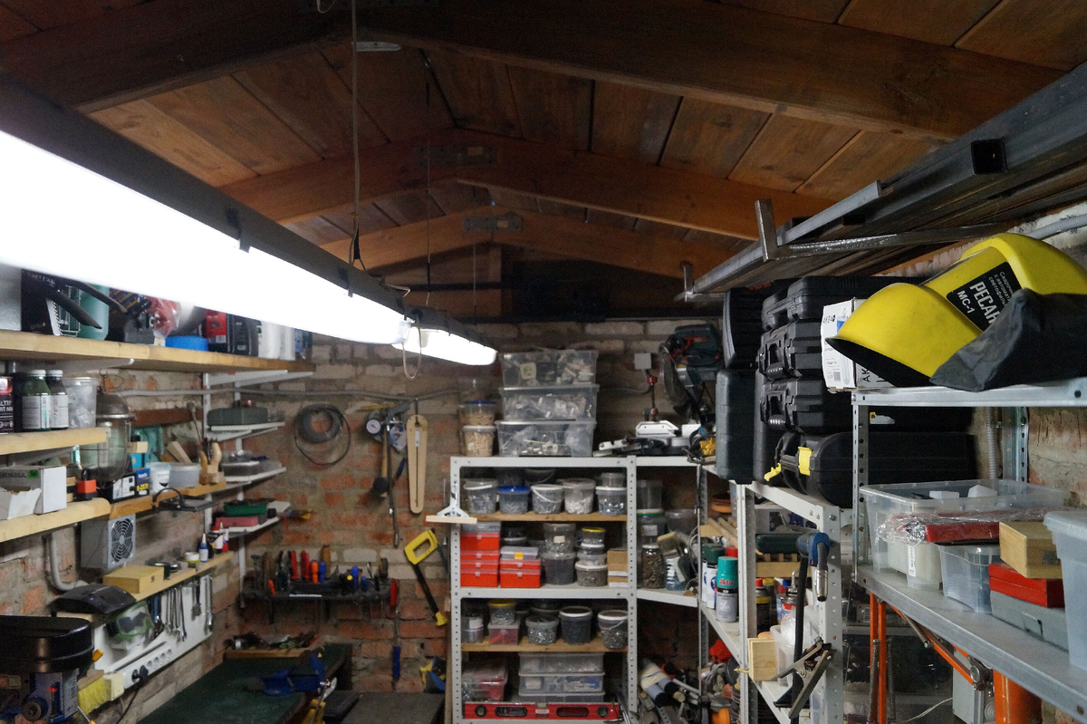 Дача мне досталась от отца. Веранду к дому, которую я уже экспонировал давеча в посте про мебель, я достроил уже позже, с привлечением товарища строителя. Помимо дома, на участке имелся недостроенный кирпичный хозблок. Он был достроен минимальными средствами, и в нем и поместилась моя "мастерская". Помещение неотапливаемое, площадь очень невелика, поэтому всё, что можно - я предпочитаю делать на открытом воздухе. Пройдемся по инструменту! Часть его я уже засвечивал в разных тематических заметках. Начну с любимого :)