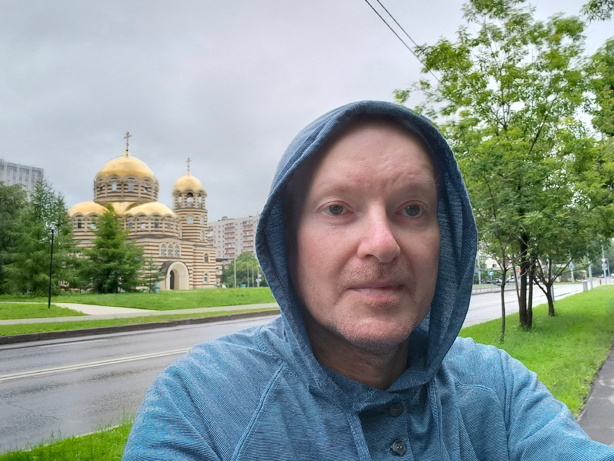 Приветствия из пасмурной Москвы! Да и ладно, что пасмурно - важнее, что для тренировок комфортно - не жарко, не холодно, ни дождя, ни ветра - отлично! А то, что после ночных дождей чуть прохладно, так на тот случай есть возможность чуть потеплее одеться. Ходил без опоры на коляску вокруг дома по направлению против часовой и логичным образом вышел к нашему красавцу Храму священномученика Ермогена. В завершение репортажа хочется пожелать моим дорогим читателям наилучших впечатлений от сегодняшнего дня. Всенепременно быть добру ❤️