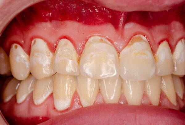 3. Отек и покраснение дёсен. Десны могут выглядеть опухшими и иметь красный оттенок.
