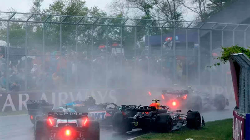 Серхио Перес был оштрафован на три места на стартовой решетке в следующей гонке Формулы-1 за пилотирование поврежденной машины на трассе имени Жиля Вильнева во время Гран-при Канады. В «Red Bull» признали, что сказали Пересу вернуться в боксы, чтобы не вызвать на трассу машину безопасности, так как его партнер по команде Макс Ферстаппен лидировал в гонке. Перес повредил свою машину, когда в шестом повороте потерял болид и врезался задней частью в барьер. Ему удалось продолжить движение, но большая часть поврежденного заднего крыла свисала с его машины. Стюарды отметили, что детали машины Переса отваливались, когда он возвращался в боксы, что потенциально подвергало опасности других пилотов: «После контакта с барьерами в шестом повороте гонщик продолжал двигаться по трассе до конца круга на значительно поврежденной машине и тем самым потерял несколько деталей из углеродного волокна на обратном пути в боксы. На слушаниях команда подтвердила, что гонщику посоветовали вернуть машину в бокс
