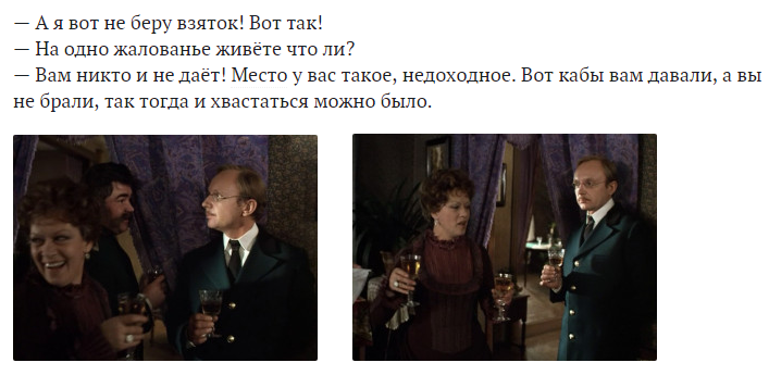 Давайте честно. Если у кого-то есть в родственниках гаишник в чине офицера и вы прекрасно знаете, что он "берёт", он становится для вас изгоем? Я вас умоляю! Вы сильно дружите с ним и лелеете эти отношения как зеницу ока, поскольку в трудной ситуации (когда, к примеру, у вас совершенно справедливо отбирают права) он "отмажет". Что, нет?
