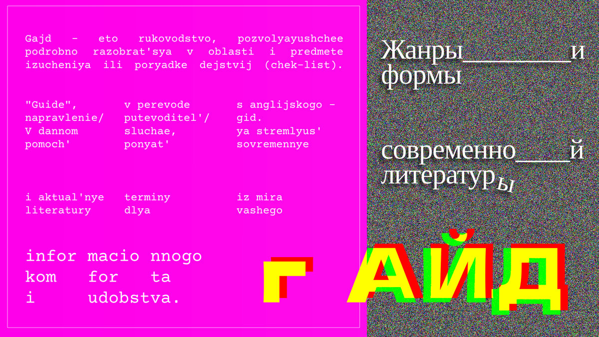 Гайд - это руководство, позволяющее подробно разобраться в области и предмете изучения или порядке действий (чек-лист). "Guide", в переводе с английского - направление/путеводитель/гид. В данном случае, я стремлюсь кратко раскрыть современные и актуальные термины из мира литературы для вашего информационного комфорта и удобства.