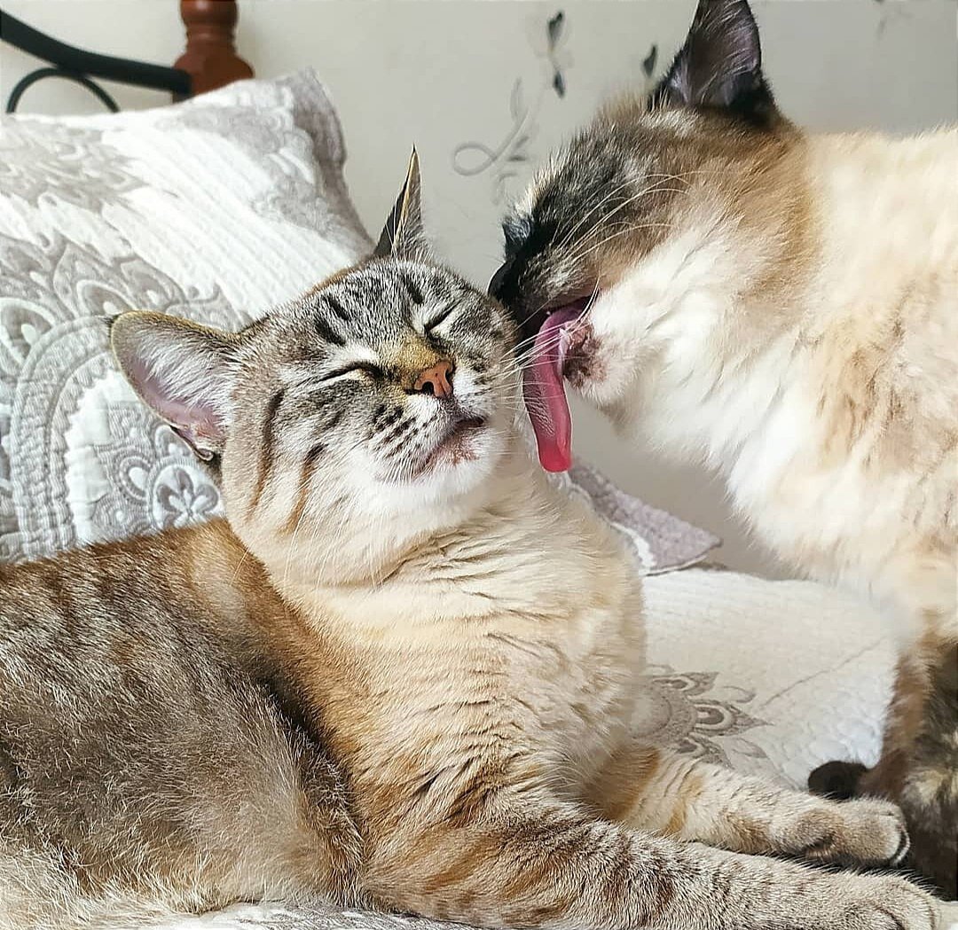 «Ты представляешь, эта маленькая девица с пониженной социальной ответственностью постоянно лижет взрослого кота. А ведь он кастрированный, что она от него хочет?», – моя знакомая, ставшая в силу обстоятельств хозяйкой двух сфинксов, пока только постигает тонкости котовладения. Кошки не люди Поэтому не надо переносить на них человеческие привычки. Конечно, во время ухаживаний половозрелые кот и кошка могут так проявлять свою готовность к спариванию. Взаимный грумминг (вылизывание), если уж хочется сравнивать с обществом людей, больше похоже на «чмоки-чмоки, девчуля» или «э…брат, как сам?». Мы одна семья Если сложилось так, что кошки живут вместе, особенно в замкнутом пространстве без самовыгула, им, волей-неволей приходится выстраивать социальную иерархию.