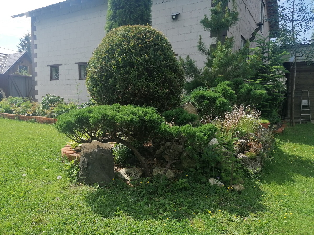 1. Начну с хвойных, которые я в прошлом году нещадно обстригла почти налысо. Это было рискованно и некрасиво по началу. Но пришлось обрезать огромные кусты из-за гриба Ржавчины (Gymnosporangium) на некоторых ветвях.