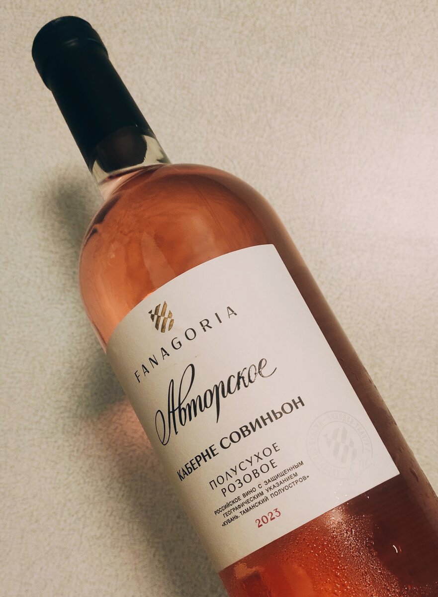 Приветы всем! FANAGORIA АВТОРСКОЕ "КАБЕРНЕ СОВИНЬОН" Содержание сахара: полусухое Страна: Россия Сорт винограда: каберне-совиньон Регион: Кубань Производитель: ОАО "АПФ "ФАНАГОРИЯ" Год урожая: 2023 Цена: 400 ₽ Алкоголь: 13% Цвет, оттенок: розовый, бледный Аромат: насыщенный, цветочный с клубничными нотами Вкус: тоже насыщенный и тоже клубничные ноты + интересная горчинка. И я ощутила минеральные нюансы 👍 Резюме: кажущееся простым вино, которое приятно удивляет ❤️ Рейтинг:95/100 ⭐️⭐️⭐️⭐️и половинка ⭐️