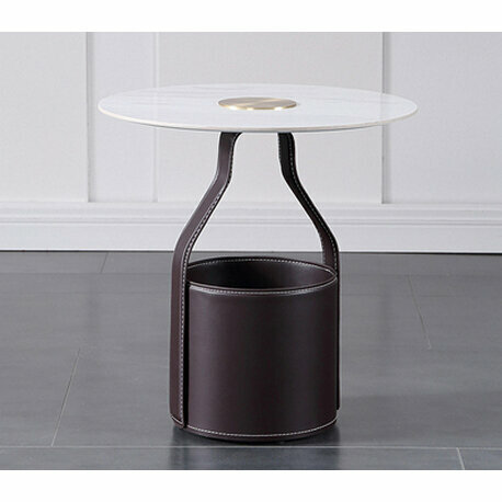Сложно представить себе современную гостиную без журнального или кофейного столика. Он не только должен быть красивым и вписываться в интерьер, но и быть удобным и функциональным. Кроме стандартной функции - хранение книг и журналов, пультов дистанционного управления, мобильных телефонов, очков, других аксессуаров, он может пригодиться во многих бытовых ситуациях. Гостиная - место сбора семь и гостей и столик понадобится для настольных игр, для сервировки легкий закусок во время просмотра ТВ и общения с гостями. Он может служить временным или даже постоянным рабочим местом. Его можно использовать в качестве прикроватной тумбочкой около раскладного дивана. Он может быть дополнительной поверхностью для размещения элементов декора - светильников, небольших растений в кашпо, фотографий и т.д. Мы подобрали для Вас трендовые столики стоимостью до 50 тыс.руб., которые точно впишутся в современную гостиную. Переносной кофейный столик обитый кожей. Отлично впишется в мужской кабинет или брут