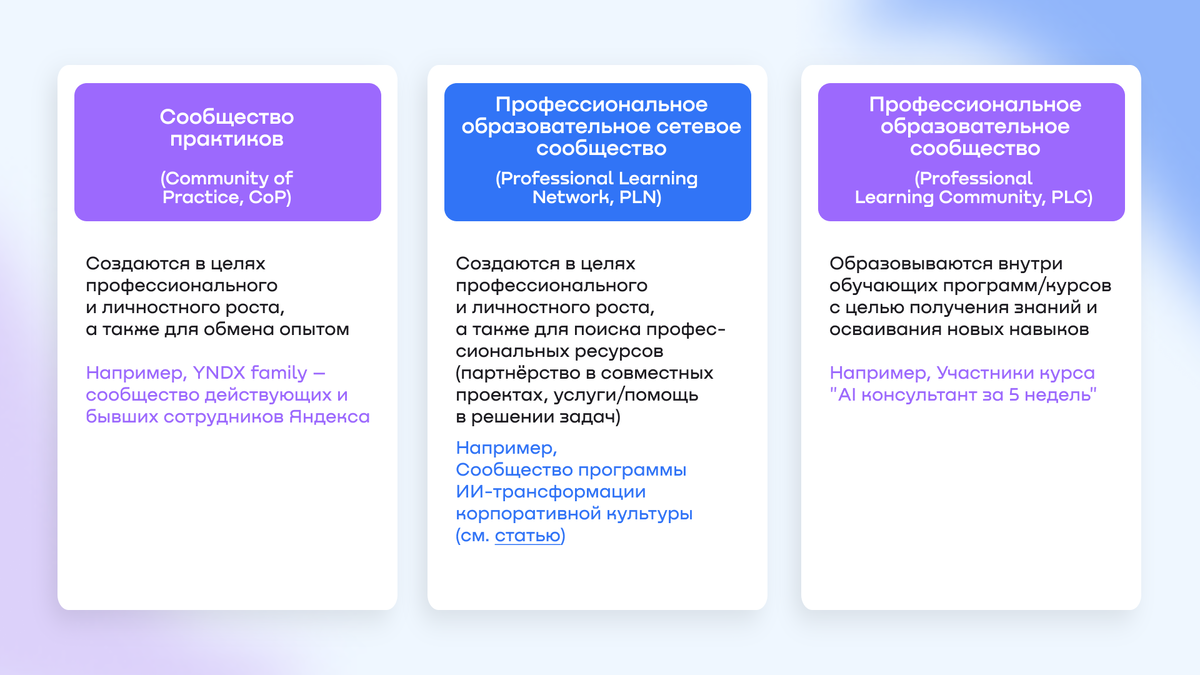 - создание продуктов и обучение через поиск единомышленников в сообществах