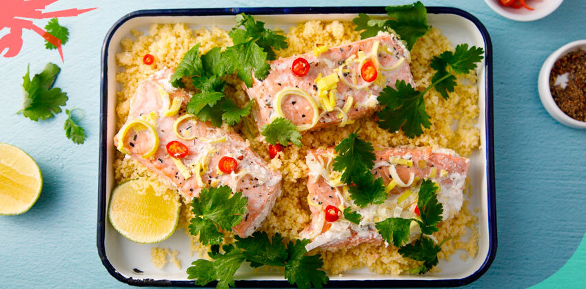 Ингредиенты: Нарезаем перец чили и лук-порей. Разогреваем духовку до 180 °C. Берем форму для запекания. Насыпаем в форму кускус. Солим и перчим по вкусу. Добавляем масло, сок и горячую воду. Нарезаем рыбу на кусочки. Посыпаем солью и перцем. Выкладываем на кускус. Сверху распределяем перец чили и лук-порей. Накрываем форму фольгой. Запекаем блюдо 20–25 минут. Перед подачей перемешиваем гарнир и украшаем петрушкой. Блюдо готово. Приятного аппетита! Источник: https://wildcrab.ru/news?id=2437