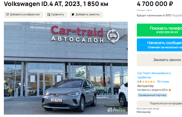 Ещё одна электричка с пробегом у этого дилера - полноприводный кроссовер VW ID.6 Crozz.
