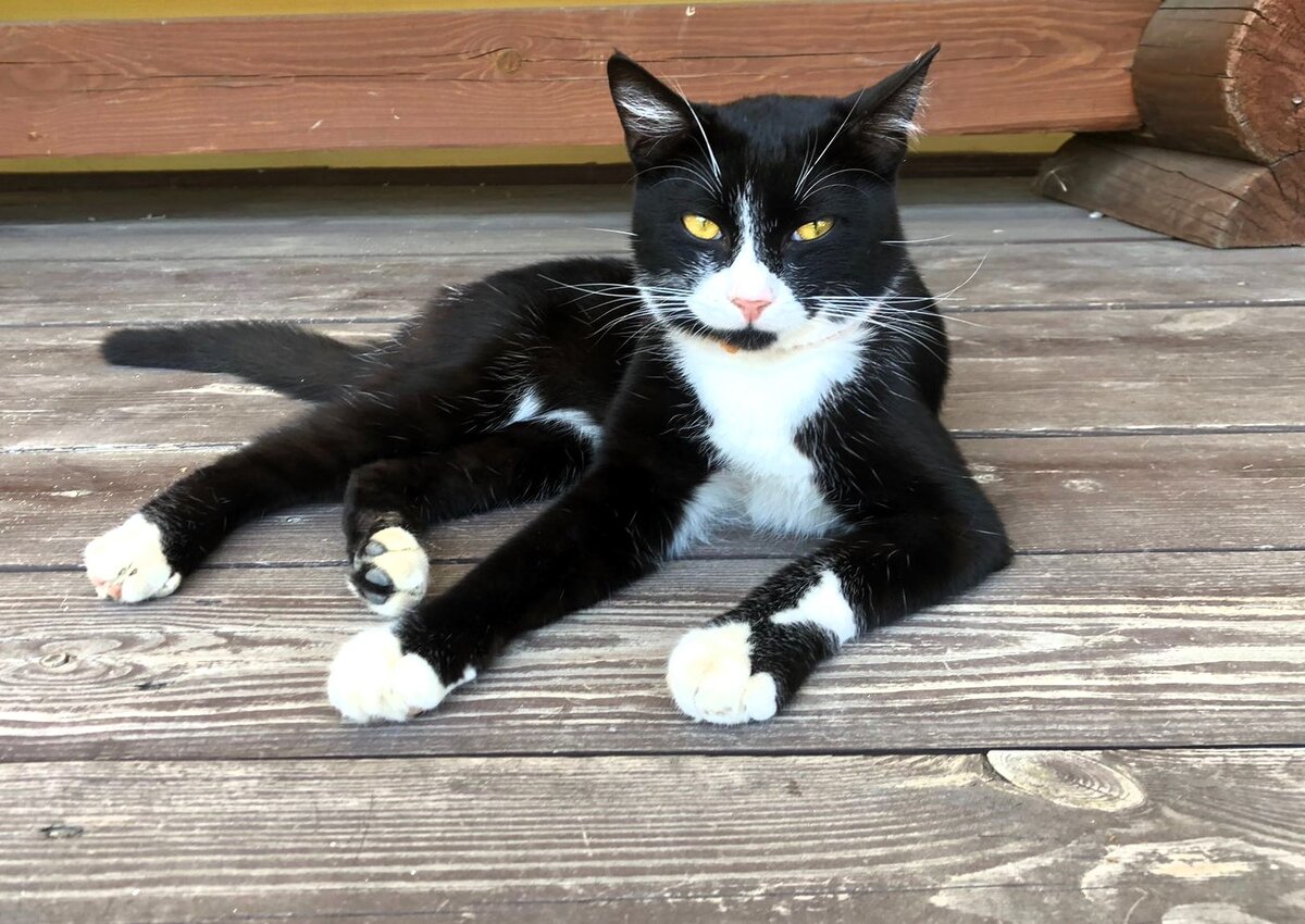 Он поселился у нас на террасе, мяукал и просился в дом, мне было его очень жалко, но я всем сказала не прикармливать его, тогда он сам уйдет. Но кот никуда не собирался уходить, он терпеливо ждал, что его наконец покормят и смотрел на меня голодным глазами. Я выдержала ровно сутки, потом покормила кота.