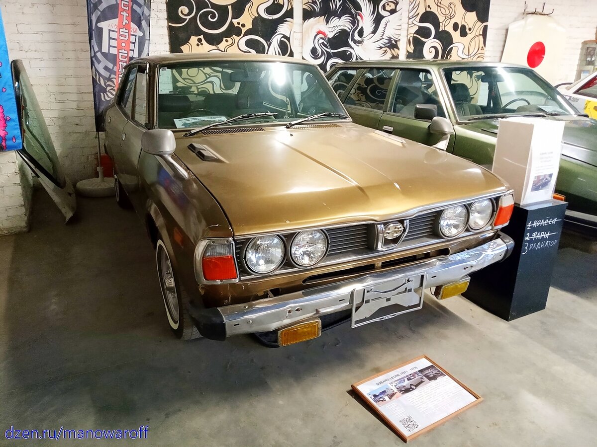Ну а теперь перейдем к автомобилям, представленным в музее. Все они марки Subaru Leone, производившейся с 1971 по 1994 год. За это время было выпущено три поколения машины. И все три имеются в музее. Название модели переводится с итальянского как "лев". Этот автомобиль стал заменой модели Subaru 1000 и предшественником Subaru Impreza. Большинство машин оснащалось дополнительным приводом на все четыре колеса. На момент своего появления Leone был топовой моделью Subaru до 1989 года, когда началось производство Legacy.