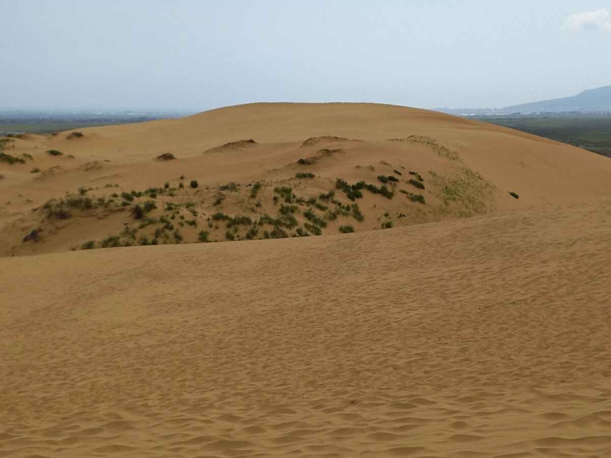 С удивлением узнала, что бархан Сарыкум в Дагестане - второй по величине в мире. 3 км в длину, около 2 км в ширину, до 260 м высоты. Крупнее его только бархан "Большой эрг" в Сахаре. При этом учёные до сих пор не пришли к единому мнению, как он образовался в этой совершенно неподходящей для пустыни климатической зоне, среди гор и степей Дагестана. Есть гипотеза, что когда-то здесь разрушилась гора из песчаника. Ещё одна версия, что в этом месте особым образом сходятся, сталкиваются ветра - с гор и с моря, поэтому выдуваемый ими песок миллионами лет скапливался именно здесь. Ну а мы можем просто любоваться этим природным чудом, как бы оно ни образовалось. Бархан великолепен! Под воздействием ветров он остаётся живым, всё время немного меняет свою форму, высоту. Но при этом не сдвигается с места, не кочует, как большинство других песчаных дюн. Сарыкум находится в 18 км от Махачкалы. Можно доехать на маршрутке от городского рынка до ближайшего села Коркмасала, но оттуда придётся ещё идти