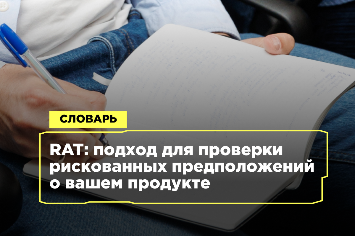 Подход RAT (Riskiest Assumption Test) — это метод тестирования гипотез, который заключается в проверке самых рискованных предположений о продукте. Основная идея подхода заключается в оценке ценности создаваемого решения для конечного потребителя, то есть в получении прибыли от клиента.