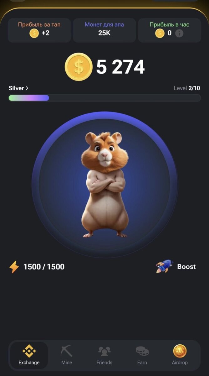 Hamster Kombat — это самый популярный на данный момент проект из серии «тапай по экрану и зарабатывай деньги». Он стремительно растет, а Airdrop (раздача монет после выхода на биржу) ожидается уже в середине июня-начале июля. Это значит, что шансов на получение реального дохода все больше и вы еще успеете поучаствовать и получить свою выгоду.