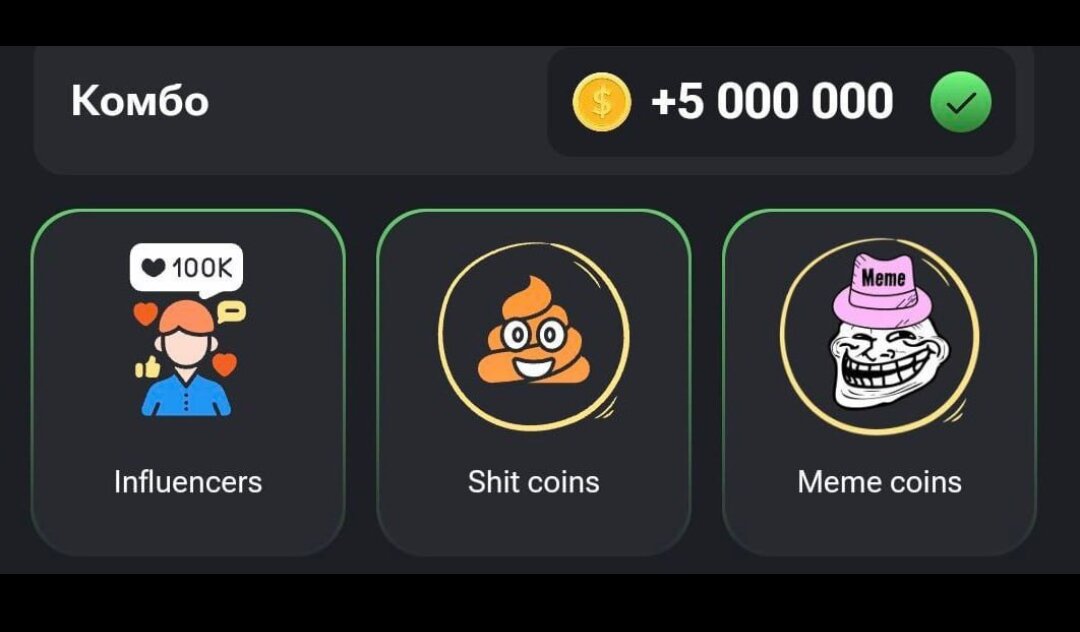 Прокачиваем ➡️Hamster Kombat (если не выгодно, то можно не прокачивать) - Influencers - вкладка PR&Team - Shit coins - вкладка Markets - Meme coins - вкладка Markets Нужно прокачать вот эти карточки и +5М монет.