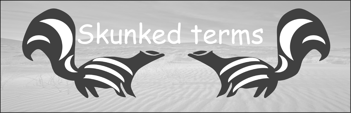 Наименование skunked terms придумал уже упомянутый Брайан Гарнер. Однако он не написал, чем это мотивировано. Я заглянул в словари Webster, Cambridge, Oxford, Longman, Academic. Безрезультатно. Такого словосочетания нет нигде, кроме Википедии. Но и в Википедии ответа на вопрос «почему» нет. Пришлось гадать. Согласно словарям, глагол to skunk имеет два значения: «разгромить в пух и прах» и «обмануть». Последнее значение по смыслу подходит. Но почему тогда это слово стоит в форме второго причастия? Почему не skunking? Это, ведь, слова могут обмануть, а не их обманули. Поискал по корпусным данным. А там у этого глагола контекстуальных значений – тьма-тьмущая. В общем, остановился на словах-обманщиках. Если кто-то знает, поправьте меня. И не судите строго.