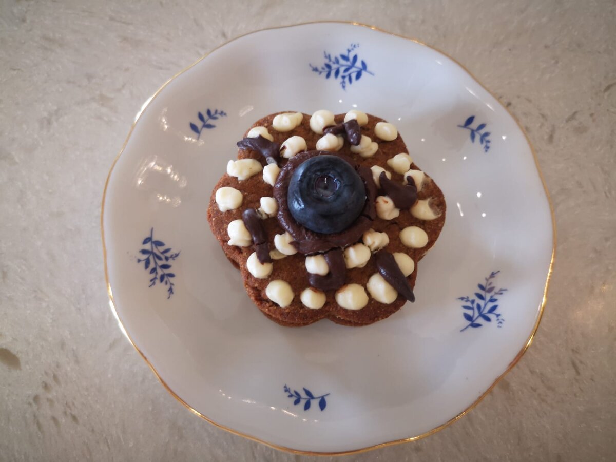 Мы все стараемся себя ограничить от тортиков и пирожных, так как белая мука и огромное количество сахара вредят нашему здоровью и наращивают животики. Эти пирожные можно есть с наслаждением, в большом количестве, они еще и вкусные! Ингредиенты: Тесто: Сахар – 60 г Масло – 100 г Мед – 70 г 2 щепотки соли 1 ч/ л с горкой соды 2 яйца Куркума ¼ ч л 1 ст/ л урбеча без меда Мука: - льняной 30 г - амарантовой 50 г - кокосовой 60 г - овсяной 120 г - цельнозерновой пшеничной 40 г -белой пшеничной 50 г Крем: Кремчиз 200 г Маскарпоне 200 г Кремообразная Рикотта 200 г Сливки 30-38% 200 г Сахарная пудра 80 г + немного ванилина Этого крема хватит на 2 порции пирожных. Он идеально храниться в морозильнике. Ягодная прослойка: 150 г любых кисловатых ягод Украшение: шоколадная глазурь + голубика Приготовление: 1. На водяной бане растапливаем масло, мед, сахар, урбеч, куркуму, соль пос