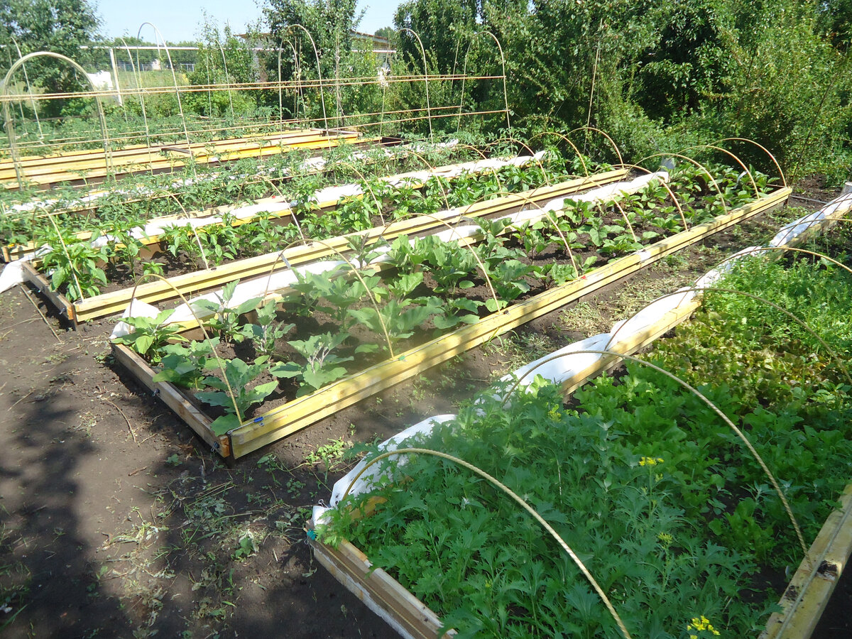 Желательно чтобы между растениями и этим материалом было воздушное пространство 30-50 см. Я, например, на протяжении нескольких лет использую для этого белый нетканый материал агрокрон плотностью 40 г на 1 кв. м. Приобрел когда-то рулон этого материала и использую его весной, когда сажаю рассаду и сею семена овощных культур, от похолодания и заморозков. А вот летом в жару этот материал спасает мои растения и от нестерпимой жары и прямых солнечных лучей. Делаю над стационарными грядками дуги из стеклопластиковой арматуры, так чтобы по центру, в самой высокой точке дуги, расстояние до растений было не меньше 50 см и накрываю растения.