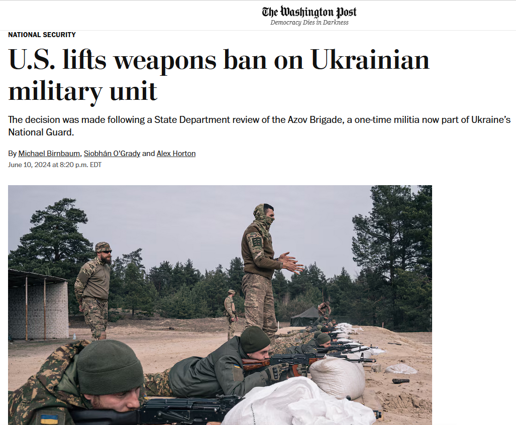 - "Администрация Байдена разрешит украинскому военному подразделению с неоднозначным прошлым использовать американское вооружение". Это кажется справедливым. Но позволяет другим странам использовать... сомнительную тактику.