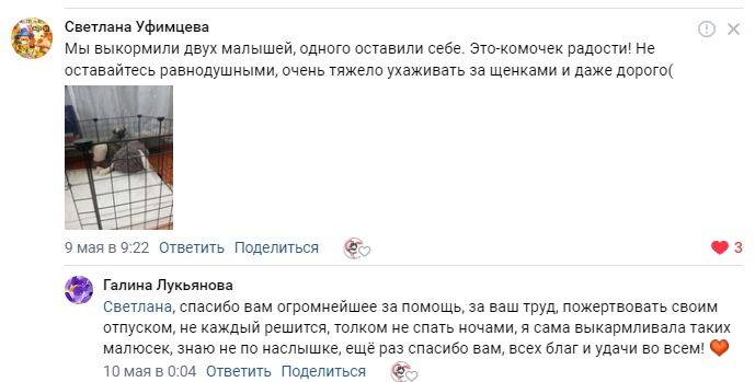 Итак, 9 апреля мы подобрали в лесу новорожденных щенков, "заботливо" разложенных у ручья с талой водой. Пару дней назад им исполнилось 2 месяца. Они уже обработаны, вакцинированы. Одного мальчишечку оставили себе кормильцы, то есть через месяц не вернули нам после выкармливания. Семья прикипела к нему и решила, что теперь он будет Арчи. А мы и рады: Второй мальчишка стал вот таким красавчиком: Его тоже уже пристроили в район. Руки очень хорошие, нам понравились, животных любят и это не просто слова, как обычно бывает, а заботятся и лечат, что в деревенских условиях очень редко встречается. Обычно деревенские собаки ум_ир_ают "не знай от чего". Пока везли щенка, он будто сразу повзрослел, вытянулся, так смотрел и чуть не плакал... Мы тоже... мы ведь родители, других он и не знал, не дали познать родную мамку... Сегодня планируется доставка до дома светлого мальчишки: Пока были только переговоры, едем на адрес и смотрим условия, будущих хозяев. Положительный момент, что предыдущая соба
