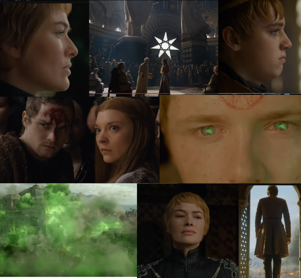 Его Воробейшество с помощниками, Маргери со своим братом, все в Септе, но Серсеи нет, и нет Томмена, Серсея задержала его во дворце обманом. Пока толпа ожидает в Септе, в подземных тоннелях под городом подкупленные Серсеей мальчишки-бедняки поджигают склады "дикого огня" - порошка наподобие пороха. Септа Бейлора и половина города взлетают на воздух вместе с главными врагами Серсеи. Сама Серсея с невозмутимым видом смотрит на взрыв из окна своей башни. Но расправа с врагами не приносит Серсеи радости: ее младший сын Томмен, увидев взрыв в Септе и поняв, что Маргери Тирелл больше нет, совершает суицид, шагнув из окна (таким образом, завершая предсказание гадалки о "золотыми будут их короны и золотыми их саваны"). Забегая вперед - предсказание о смерти от удушья в руках брата тоже окажется верным, вот только не в том смысле, которого всегда опасалась Серсея.
