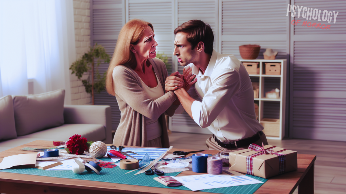 Но вместо ответа Светлана Дмитриевна начала снова кидаться на сына в попытках отобрать подарок. Когда у неё ничего не получилось, она сгребла всё со стола, где сын только что занимался упаковкой, и скинула на пол. Но этим она не ограничилась. Она схватила ножницы и начала тыкать ими в мягкую мебель и во всё, что ими можно было проткнуть.