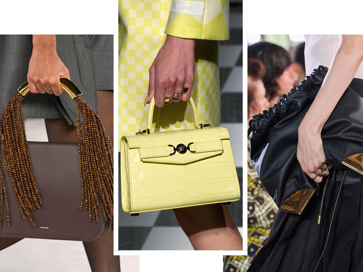 - Сумки с жесткой ручкой: Сумки с жесткой ручкой также входят в модные тренды сезона.
