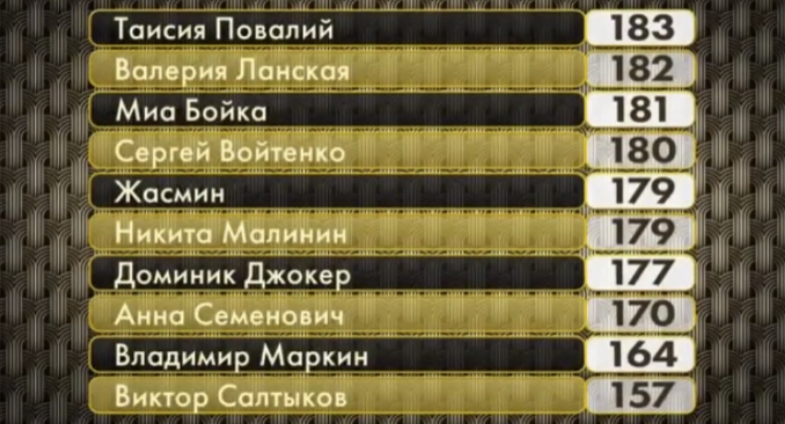 Добрый день! Я тут подумала, что шоу "Три аккорда" подходит к завершению, а мы с вами даже не попытались догадаться, кто станет победителем. Теперь уже это сделать проще, но всё же мы сможем поиграть. Как? Сейчас расскажу. Для начала покажу таблицу на сегодняшний день: Я посмотрела, какие награды вручались в прошлых сезонах: Если в этом году будут такие же награды, то вариантов, кто получит их, множество. Давайте сделаем так. Я сейчас напишу, кому бы вручила эти награды (если бы решала этот вопрос я, что звучит очень смешно). Итак, мои симпатии и предложения: Никита Малинин - Стинг в шоу "Один в один!" Ролик с канала Sly_nn Studio. Ролик с канала Jdsl2008. Почему других не выбрала? Не знаю, вот так мне захотелось. Ну а будет, конечно, всё иначе. А теперь мне нужно подать пример - написать, как это будет на самом деле, чтобы поддержать нашу игру. Но у меня интуиция очень плохо работает, поэтому не буду предполагать. Давайте это сделаете вы. Или напишите, кому бы вы присудили