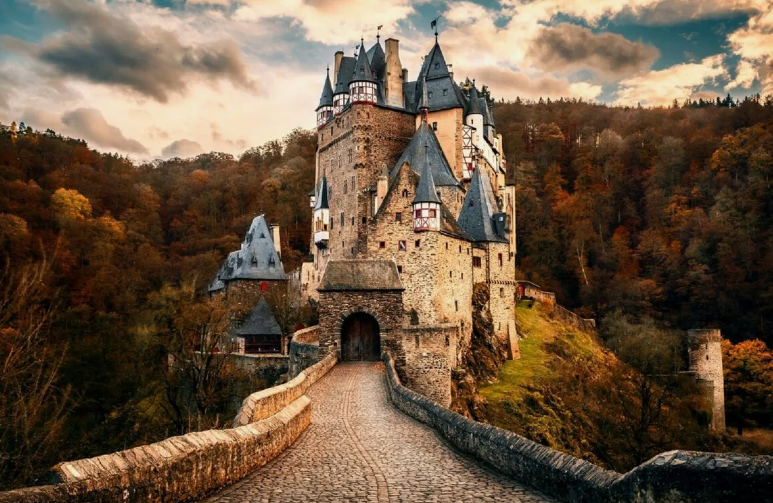 Замок Эльц (Burg Eltz) — одно из самых живописных и хорошо сохранившихся средневековых укреплений Германии. Расположенный в глубокой долине реки Эльцбах, притока Мозеля, этот замок, кажется, прямиком сошёл со страниц сказок. Величественный, окружённый густыми лесами и утопающий в зелени, Замок Эльц олицетворяет романтику средневековой архитектуры и живой истории.