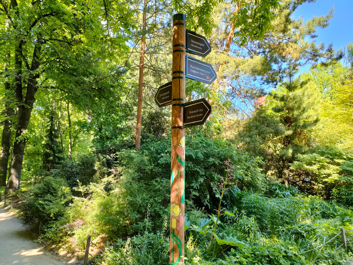 Люблю гулять в Аптекарском огороде. Я уже достаточно хорошо ориентируюсь, иду сразу в нужном направлении. А тут что-то задержалась на входе, и мой взгляд упал на табличку "Теневой сад". Вот это открытие! Про теневую зону в Аптекарском огороде я и не знала. Если вдруг тоже захотите посетить этот уголок, то идите по нижнему указателю. Вот и эта табличка. Было интересно посмотреть, как живут теневыносливые растения в ботаническом саду. Я ожидала увидеть цветы, а это растение мы называли цветущей крапивой. Красивое название - яснотка белая. Лапчатка ползучая - я вообще считаю ее сорняком, причем, трудновыводимым. Хатьма тюрингенская, семейства мальвовые. Должна цвести красивыми фиолетовыми цветами. Лекарственное и декоративное растение, а еще из него делают веревки. На этом месте должен быть лук обманывающий. Пока не цветет, обманывает. Тут без комментариев. Что выросло, то выросло. Не знаю, цветет ли осока, но ей в тени явно хорошо. Две таблички. Чтобы лучше запомнилось название. Я на