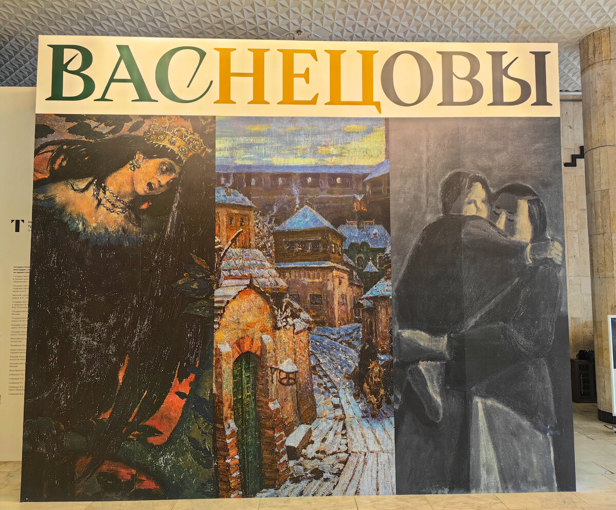 Перед входом на выставку огромный баннер «ВАСНЕЦОВЫ». Это компиляция трех картин трех мастеров. Показываем билеты и проходим. Кстати, о стоимости.
