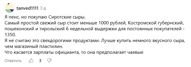 Посетил я недавно знаменитую сыроварню Сироты и спешу поделиться впечатлениями. Сегодня мы про деньги. Да, я жадный. Мне не жалко отдать несколько миллионов рублей за хороший автомобиль, но я не понимаю, как можно купить сыр за 2000 рублей, когда его красная цена 700 - 800. Что думаете о сырах Сироты вы - мои подписчики? А вот здесь мнения разошлись. Примерно 50 на 50. Некоторым нравится. Другие, наоборот, критикуют. Лично я сыр от Сироты не пробовал, но кое-что у него все-таки купил. В конце покажу. Забегая вперед: в сырном магазине очень много народа. Особенно днем в воскресенье. Итак, в продаже прежде всего имеются сыры. Цена от 170 до 270 рублей за 100 грамм. По сравнению с магазинным, прайс безумный. Что же касается качества, сами видите. Некоторые ставят твердую пятерку, а другие, наоборот, пишут, мол сыр резиновый. Сырные конфеты выглядят очень аппетитно. Но платить 560 рублей за 100 грамм - вне моего разумения. На эту сумму можно прикупить 4 шоколадки "Риттер Спорт" и получить