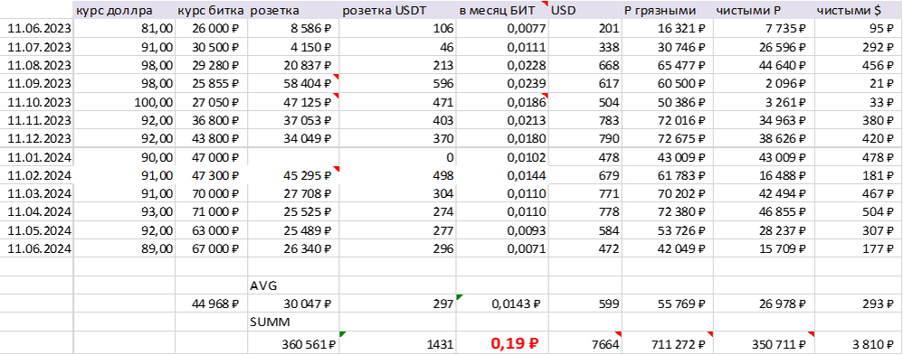 Изначально я купил 3 ASICа за 494 000 рублей. На электричество потратил около 360 000 рублей (в среднем 30 000 рублей в месяц). Сейчас на моем счету 0.19 BTC, что эквивалентно 12 481 доллара или 1 110 000 рублей. Если бы я продавал добытые BTC каждый месяц 10-го числа, доход составил бы 350 000 рублей (27 000 рублей в месяц), и для окупаемости оборудования мне потребовалось бы еще 144 000 рублей. Однако, поскольку я ничего не продавал, фактический чистый доход составил 256 000 рублей (19 000 рублей в месяц). Из трех ASICов сейчас работают два. Третий, размещенный в компании Promminer, снова отключен. Об этом я напишу отдельный пост, когда ситуация разрешится. Я не планирую продавать BTC, а буду размещать их на лендинге AAVE, как писал ранее. Хранение BTC оказалось гораздо выгоднее, чем их немедленная продажа. Кроме того, покупка BTC по стратегии DCA приносит больше дохода, чем покупка оборудования и майнинг. Основные посты на тему финансов и "Свободы в целом" в моем телеграмм канале P