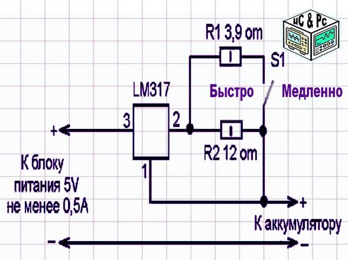 Как зарядить Аккумулятор? Приведенная ниже принципиальная схема зарядного устройства именно для аккумулятора, а не для сотового телефона. Оно построено на микросхеме-стабилизаторе LM317. Разница в том, что схема зарядки сотового телефона состоит из внешнего блока питания напряжением 5-5,5V и внутренней схемы контроллера зарядки. То есть, фактически, собственно зарядное устройство содержится внутри сотового телефона, а то что называют зарядным устройством — это всего лишь блок питания для него. Блок ПИТАНИЯ на LM317 усиленный до 20 А транзисторами КТ819 Если потеряно так называемое зарядное устройство, то его можно купить или использовать любой другой источник постоянного тока напряжением 5-5,5V и током 0,5-1 А. Это особенно просто сейчас, когда у всех сотовых телефонов для зарядки используется один из стандартных USB-разъемов. Типоразмеры АККУМУЛЯТОРОВ (LI-ION, LIFEPO4 и другие) Маркировка размер и состав Куда хуже если вышло из строя само зарядное устройство, которое находится внутри