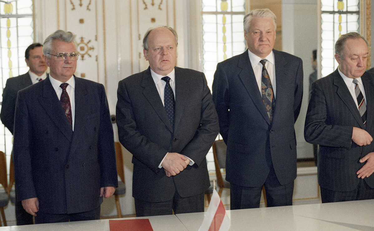 В декабре 1991 года главы Белоруссии, России и Украины собрались в Беловежской пуще и подписали Соглашение о создании СНГ, что означало признание распада СССР. 21 декабря к СНГ присоединились ещё 8 республик, и все бывшие советские республики, кроме прибалтийских, вошли в новое содружество. Президент СССР Михаил Горбачёв не смог принять ситуацию и объявил о прекращении своей деятельности 25 декабря. 26 декабря сессия Верховного Совета СССР приняла декларацию о прекращении существования СССР. В это время органы власти СССР перестали быть субъектами международного права. Россия взяла на себя долги и активы СССР, а также объявила себя собственником всего его имущества за пределами бывшего СССР. Современные политологи дают несколько версий распада СССР. Это, например, экономические трудности, политические разногласия и национальные конфликты. 1. Авторитарный характер советского общества. К этому пункту отнесем гонения на церковь, преследование диссидентов, принудительный коллективизм. Соц