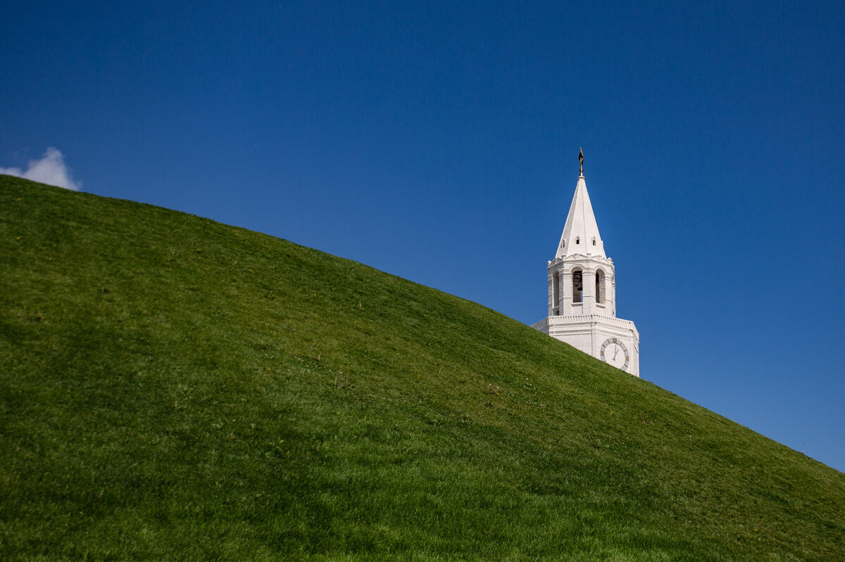 Сегодня редакция «Российских древностей» предлагает своим читателям ещё раз пройтись по Казанскому кремлю и обратить внимание на главную кремлёвскую въездную башню – Спасскую. Только посмотреть на неё не с фасада, а с внутренней стороны, с территории кремля. Так мы можем заметить, что к башне изнутри цитадели примыкает сооружение с аркой в цокольном этаже, двускатной крышей и остатками многолопастного завершения. Это всё, что сохранилось от надвратной церкви Нерукотворного Спаса, поставленной в середине XVI века над главным въездом в Казанский Кремль.