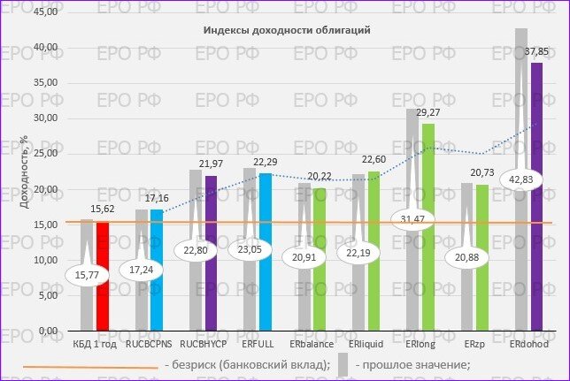 Как мы видим, разница в значениях индекса полной доходности ЕРО РФ (EROFULL) на 11.06.2024 и 21.05.2024 весьма существенна - рынок не воспринял позитивно сохранение ставки на текущих уровнях. Хотя серьёзных предпосылок к повышению ставки не наблюдалось.