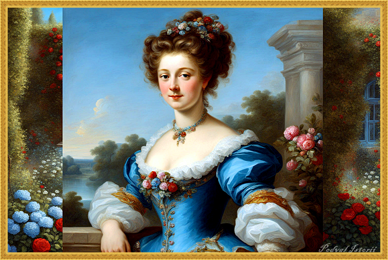Мари-Анжелик де Скорай де Руссиль, герцогиня Фонтанж, последняя официальная фаворитка стареющего Людовика XIV, который позже тайно женился на мадам де Ментенон. Несмотря на красоту (отмеченную всеми современниками) и юный возраст, ей в 1680 году было лишь 17 лет, герцогиня Фонтанж умерла в аббатстве Шель в 1681 году, но оставила в наследство весьма живучую моду, которая покорила как дам, так и кавалеров: прическу «Фонтанж»! Истории о рождении этой прически, этого фонтана из волос, лент и цветов, который был в моде в конце 17-го и начале 18-го веков, оставили в своих мемуарах и записках многие современники той блестящей эпохи. Граф Роже де Бюсси-Рабутен, известный придворный, распутник, писатель и сатирик (двоюродный брат не менее знаменитой маркизы де Севинье), рассказывает нам о зарождении прически «фонтанж» в своей книге «Истории любви галлов». Вероятно, в сентябре 1679 года в лесу Фонтенбло Мари-Анжелик приняла участие в охоте в компании своего возлюбленного, короля Луи XIV. Бюсси-Р