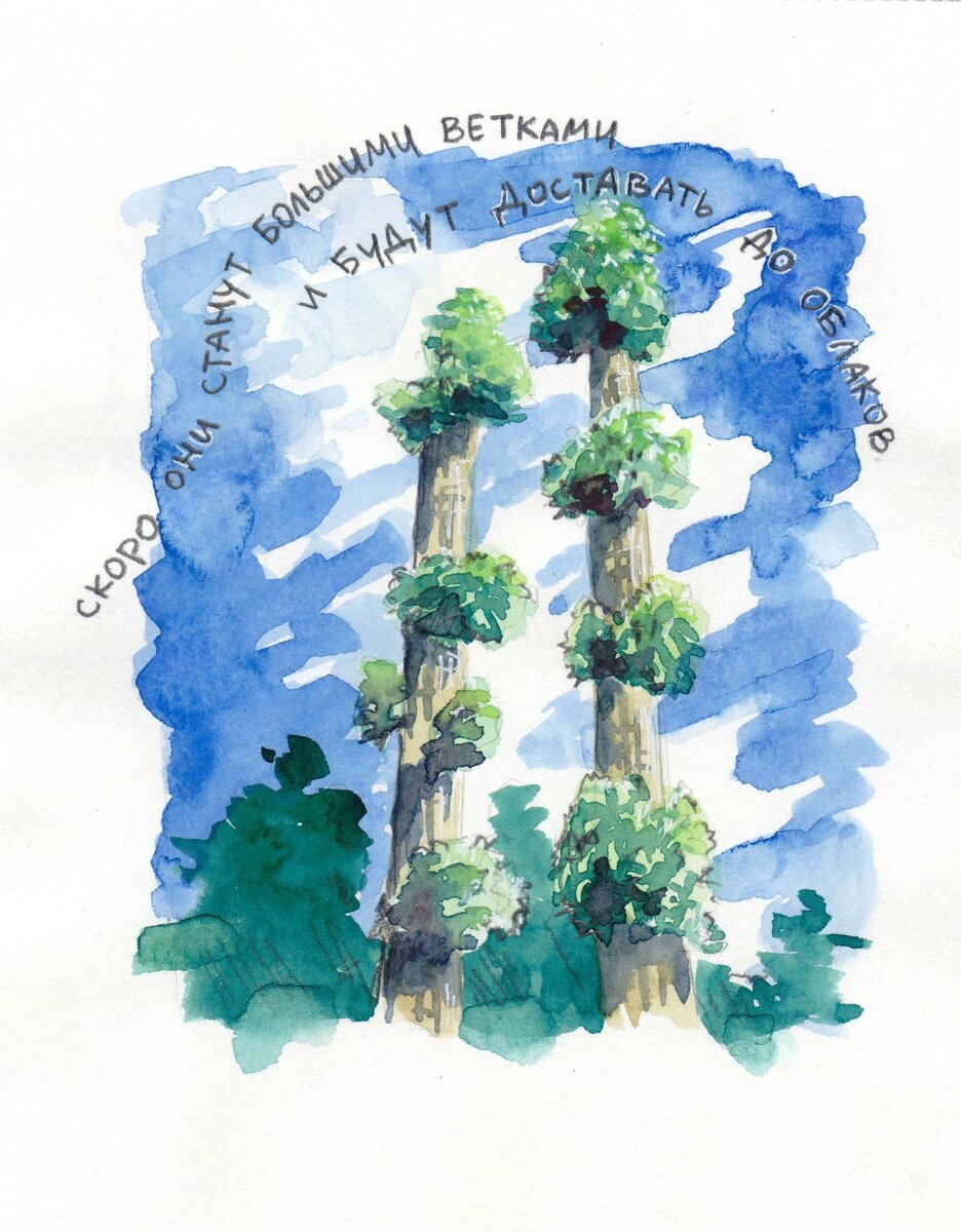 Вы заметили, как радуют внезапно нежные ростки зелени на старом пне или загубленном дереве? Лично я так радуюсь - жив, курилка! Отношусь к деревьям как к живым существам, поэтому согласна с эссе Александры. Когда ты лето — ты старый могучий ствол тополя. Прошлой осенью тебе спилили все ветви, и ты из дерева превратился в столб и долго горевал, что так изменился и перестал быть похожим на себя. Зато сегодня, когда твое тело оправилось после зимы, оно пустило новые побеги. До веток им еще далеко, но их много, по всему стволу они пробиваются зелеными пучками и шелестят глянцевыми листьями близко от тебя. Они обнимают тебя со всех сторон, а ты рассказываешь им, что скоро они станут большими ветками и будут доставать до облаков. Сегодня, когда в городе ураган, ты особенно радуешься тому, что твои дети рядом с тобой, так близко к твоему телу, как только новорожденный может быть близок к маме. И даже самый сильный порыв ветра не может их оторвать от тебя, как если бы это были взрослые мог